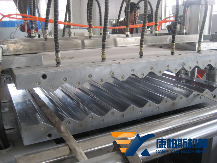波浪板生產(chǎn)線又稱波浪瓦生產(chǎn)線、根據(jù)材料不同可分為PP、PE、PC、PVC等材料,又有多層及單層之分。根據(jù)生產(chǎn)制品工藝,分單螺桿擠出波浪板生產(chǎn)線和雙螺桿波浪板生產(chǎn)線,又可分為直接模具成形或壓輥成形方式。