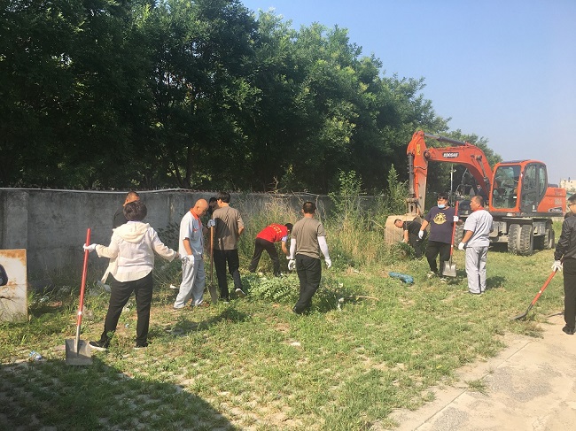 因?yàn)榻煌ㄙe館院內(nèi)是一個(gè)廢棄的停車場,所以需要清理的垃圾較多。活動現(xiàn)場,參加義務(wù)勞動的志愿者們拿著掃帚、耙子、鐵锨等工具在院內(nèi)開始清理工作,雖然天氣炎熱,但每一位志愿者都不怕臟、不怕累,擼起袖子加油干,認(rèn)真對停車場院內(nèi)生活垃圾、衛(wèi)生死角、雜草及白色污染等進(jìn)行了整治清理,并聯(lián)系了清運(yùn)汽車,對院內(nèi)的亂堆的雜物、建筑垃圾進(jìn)行了清運(yùn)。